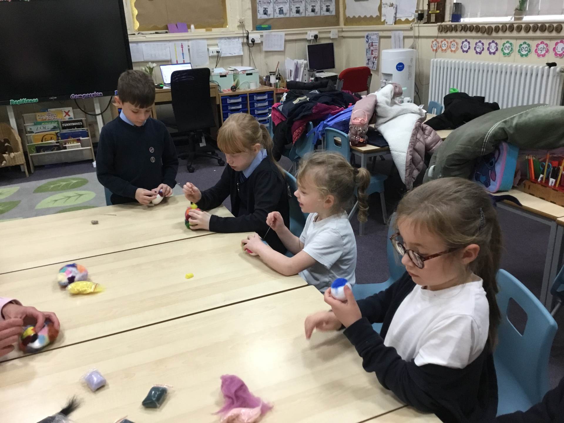 Our Year 2 and 3 children are creating Christmas baubles to take home and colourful hearts which we are going to donate to Russells Hall hospital to give to patients and their families.